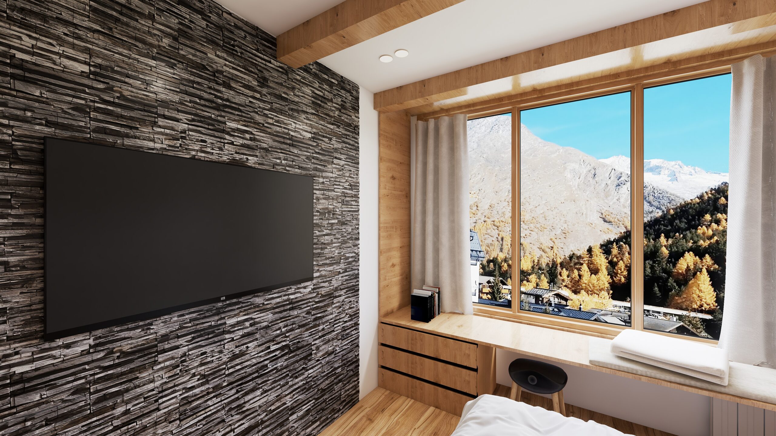 Der Augenblick, in dem Sie die Tür zur Hotelsuite –204 öffnen, ist einer dieser seltenen Momente, in denen man stehen bleibt - weil sich sofort ein Gefühl von Verbundenheit und Ankommen einstellt. Dieses warme Licht, das von Osten sanft in den Raum fällt, der Blick hinaus ins Helle, die Ruhe, die sich wie ein weicher Mantel um Sie legt … schon in den ersten Sekunden spüren Sie: Hier bin ich zuhause. Die Berge färben sich in zartes Rosa, der Schnee glitzert wie bestreuter Zucker - und eine angenehme Frische mischt sich mit der warmen Behaglichkeit im Inneren. Man spürt sofort: Hier draußen beginnt der Tag anders. Klarer. Reiner. Wie ein tiefes Einatmen nach langer Zeit.